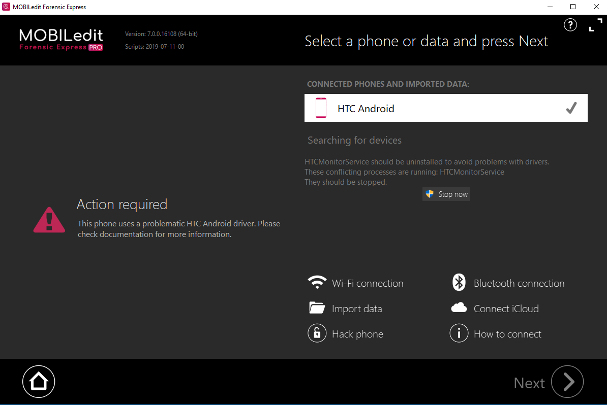 5.  Re-run MOBILedit Forensic and your HTC device should be connected.