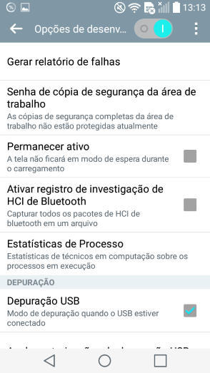Clique aqui para orientar como ativar as Opções do Desenvolvedor no seu telefone.