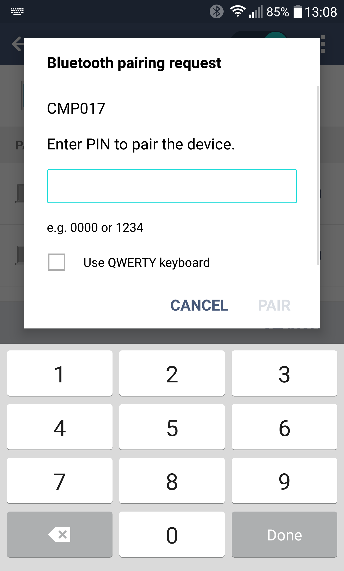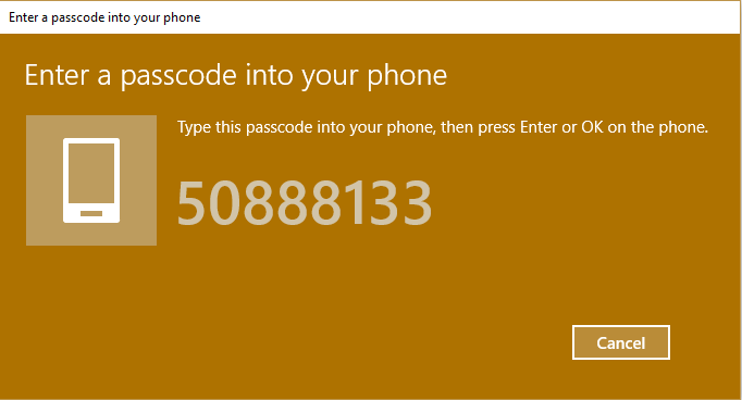 When attempting to pair you will be asked to provide a matching password on both the phone and the PC as seen below on the screenshots.