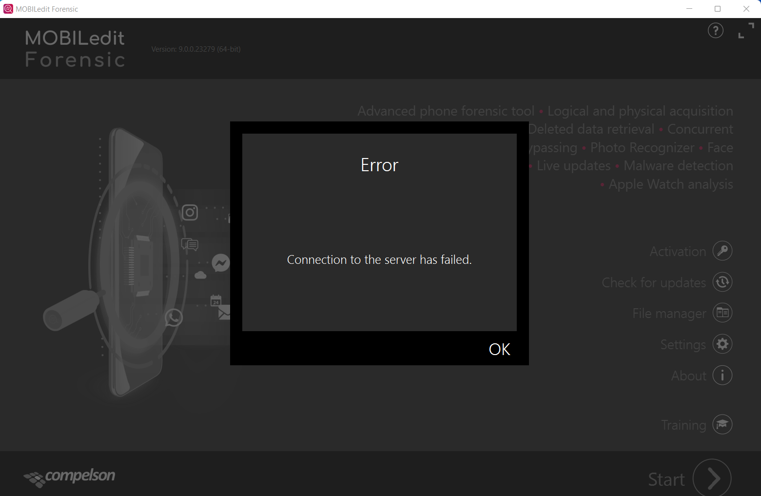 When this dialogue window appears, we advise checking if the date and time are set up correctly, also in some cases computer security software and network firewalls may block the connection. You can either try a different network or check the setting of the firewall.