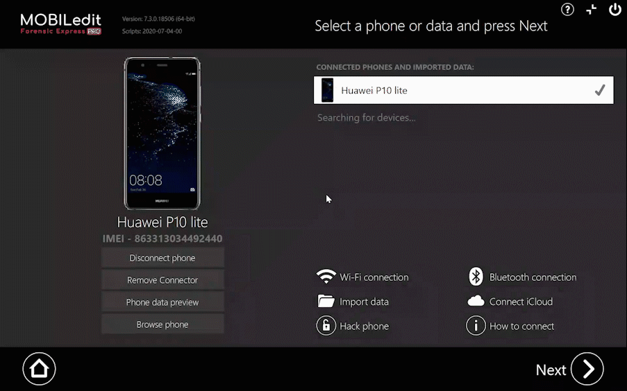 If you connect a device with an outdated Connector app installed from an older version of MOBILedit Forensic, you will receive a warning: Old Connector in the phone.