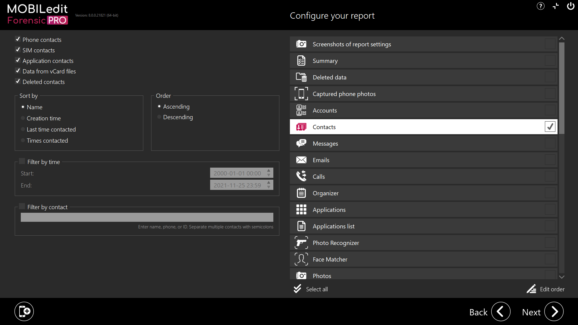 All vCard files retrieved from the phone will be analyzed, and the results will be merged to the Contacts section as well.