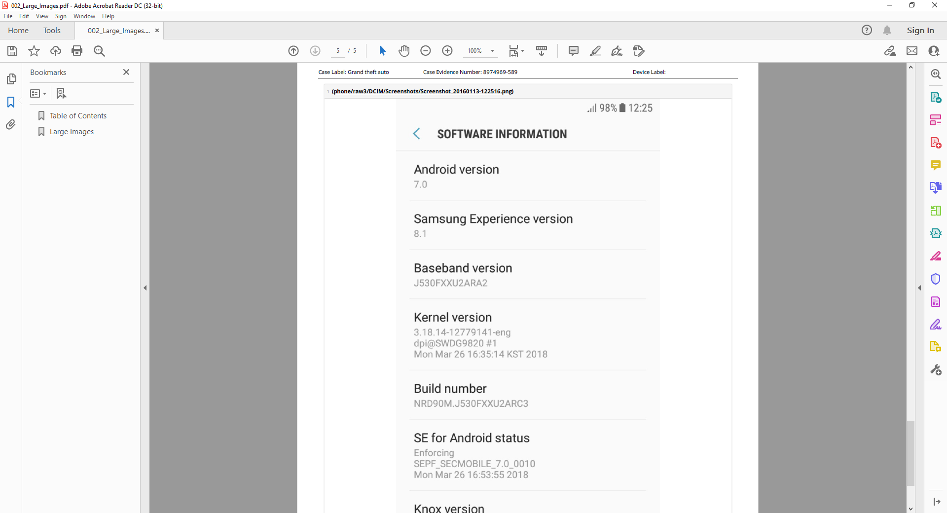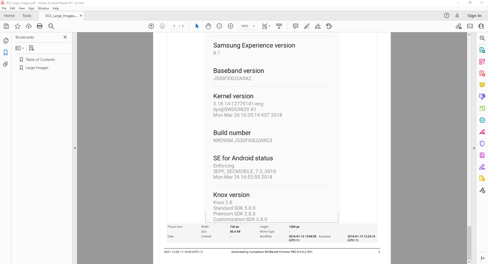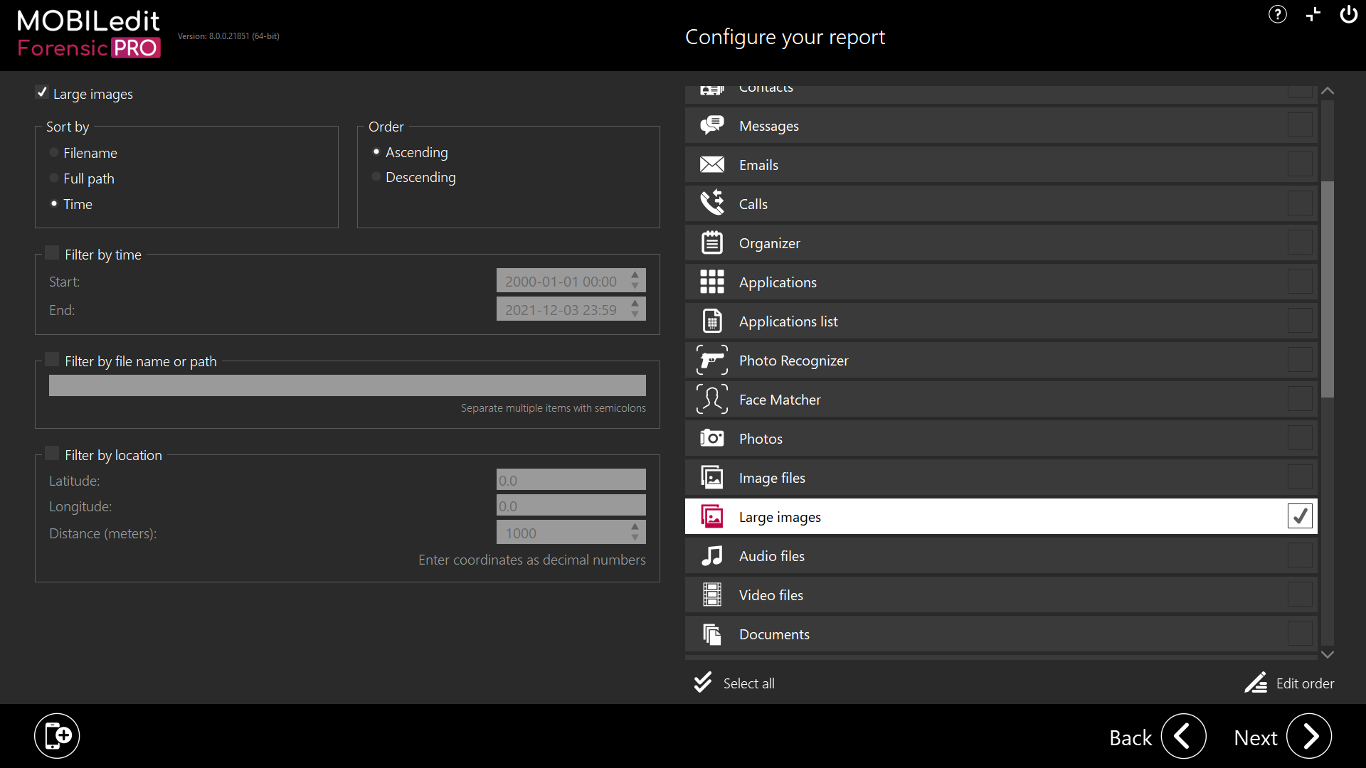 The large images section provides you with extracted images in a larger size (one-page size). To use this module it relies on you previously selecting an images module for example photos or images. It is also possible to create a report with a single large image by using filters if a condensed evidential report is required.