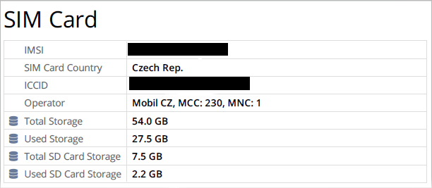 Extracts data from the SIM card such as IMSI, Country, ICCID, and Operator.