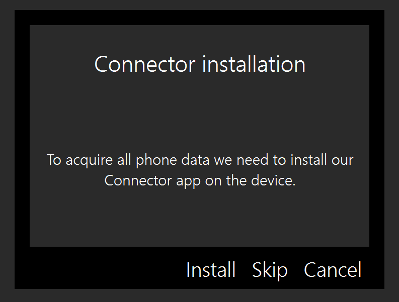 Note: Extraction without the Connector app will provide less data than with the connector and should only be used if necessary. The amount of retrievable data varies between different devices.