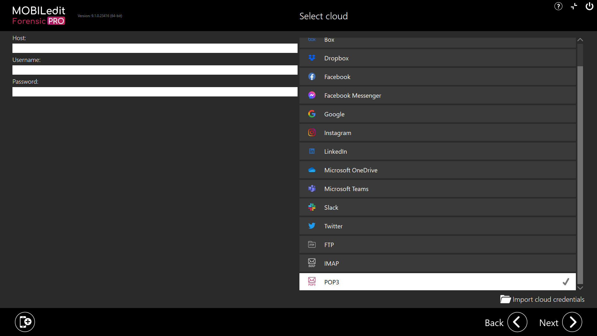 Before the acquisition, it is likely that the investigator won’t know if the emails will be deleted from the server or not. Therefore, it should be assumed that they will be deleted unless the account settings are known. Accessing POP3 accounts using Forensic Cloud is done so at the investigator's own risk, and the fact that emails could be deleted should be recorded in notes.