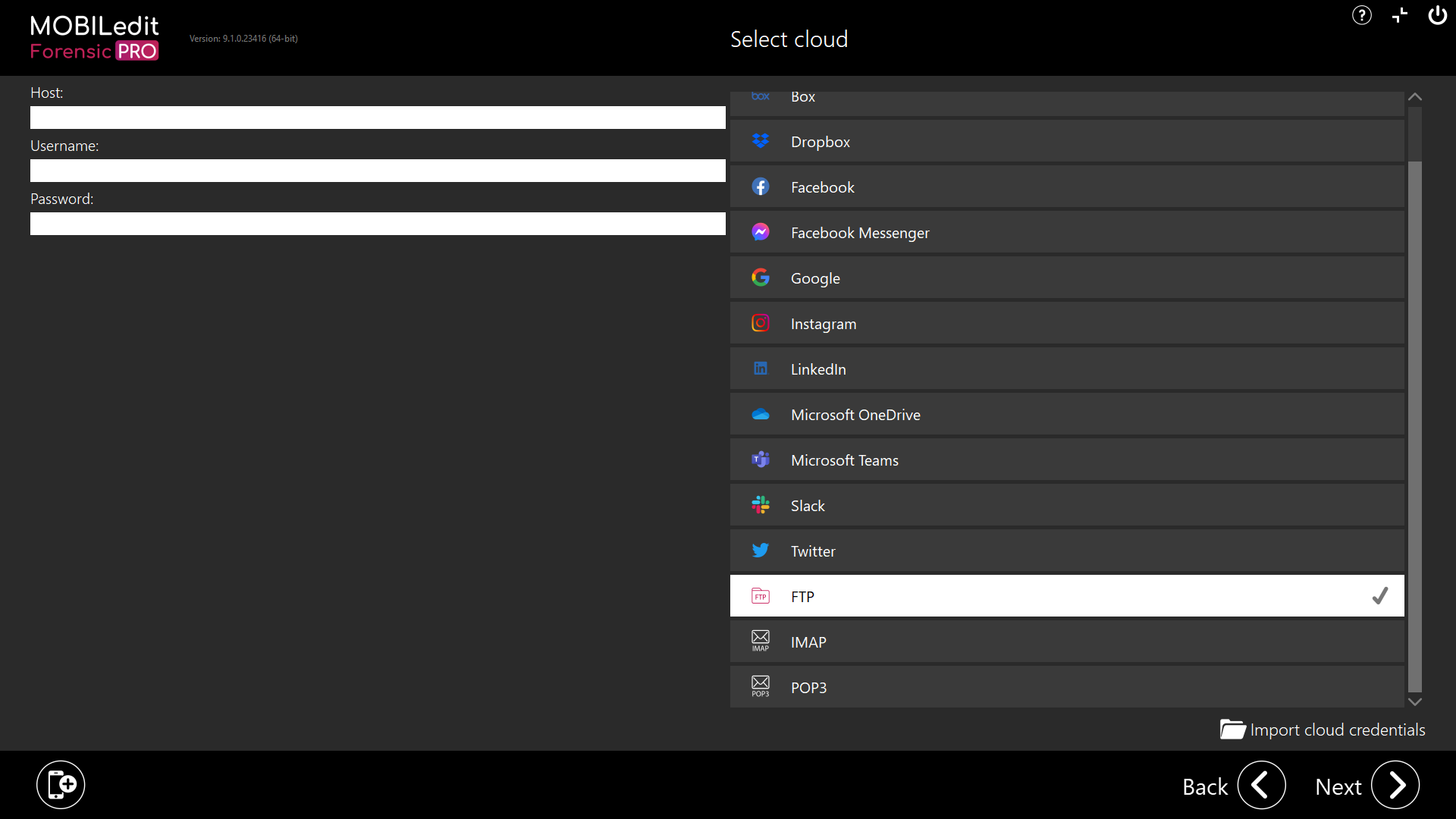 There are two types of FTP communication that MOBILedit Cloud Forensic can access, FTP which is unencrypted and FTPS which is encrypted using SSL.