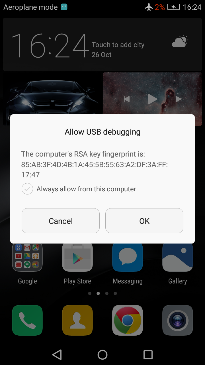 There should be a pop-up window on your device's screen with a message ( as shown on the picture below) which asks you to confirm the RSA fingerprint. Tick “Always allow from this computer” and then tap OK. If there is no dialog, please reconnect the phone and the dialog will reappear.