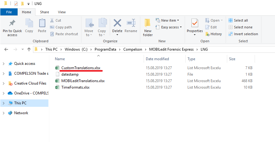 Navigate to the folder with MOBILedit languages (path to the needed folder: C:\ProgramData\Compelson\MOBILedit Forensic\LNG).