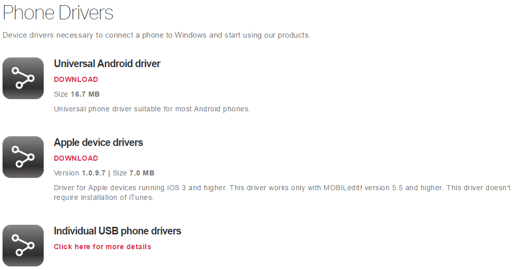 2. Install the correct USB drivers for your phone. We recommend downloading a complete driver package.